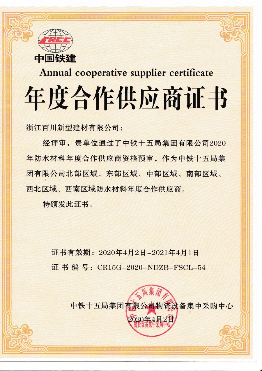 年度合作供應(yīng)商證書